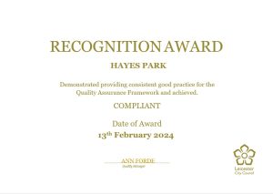 Thank you Leicester City Council for awarding us the Recognition Award in February 2024 for “providing consistent good practice for the Quality Assurance Framework”.
