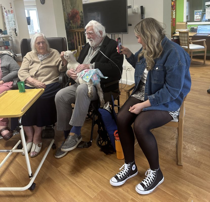 - Sensory Stimulation: The soft feel of the lambs’ wool, their gentle bleats, and the simple act of touch helped stimulate the senses and encourage interaction — especially for residents living with dementia, where sensory-based activities can promote calmness, focus, and even awaken memories.