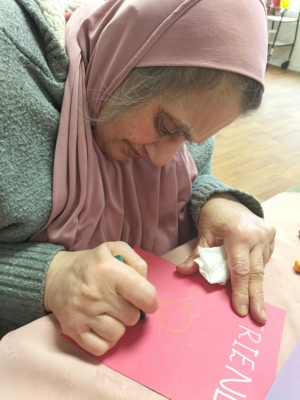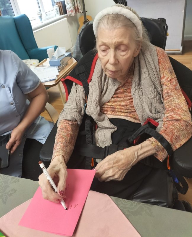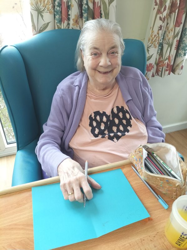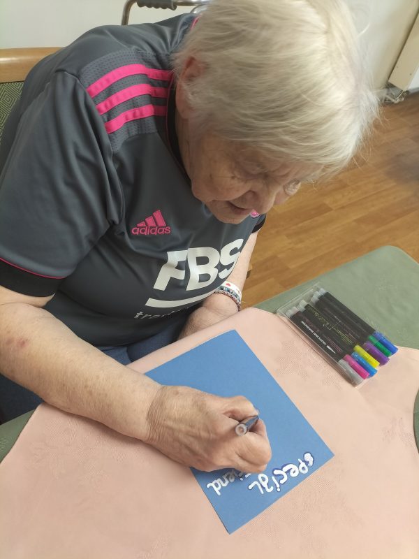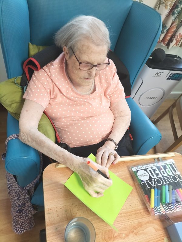 Today we have been busy making cards for our friends! It has been an afternoon of creativity, colours and crafting. Our residents have been using a variety of colours, cards, glitter, crayons and templates of patterns to piece together their perfect and unique cards.