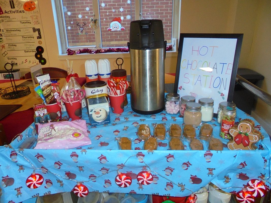 The festivities have begun! Our hot chocolate creations were a great success and very popular with our residents. We set up a selection of different flavoured chocolates, whipped cream, sprinkles, candy canes, candy spoons and mini gingerbread men biscuits for those who love to dunk their cookies in a hot drink!
