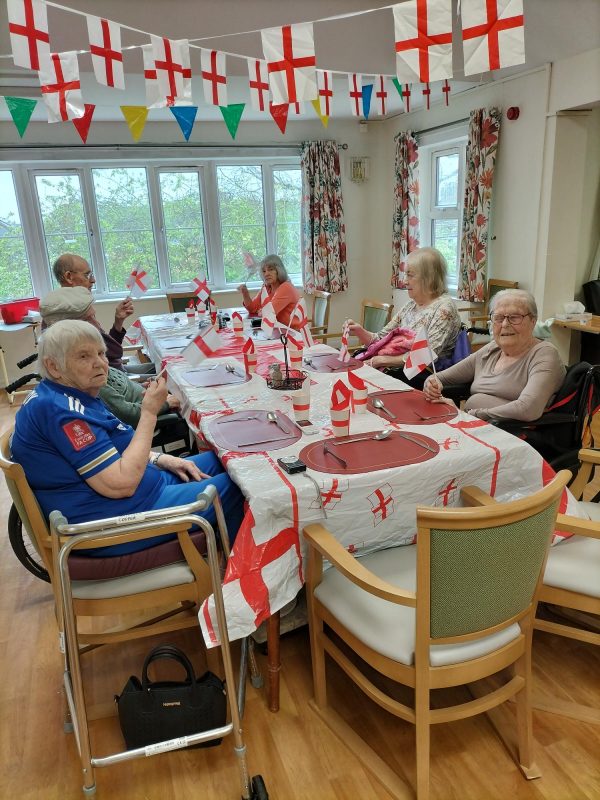 Our resident’s enjoyed watching the live streaming of the national St George’s Day event hosted in Trafalgar square, whilst enjoying a traditional roast dinner, waving flags and discussing as a group the history of St George himself!